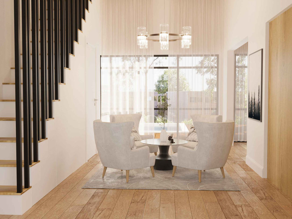Created for both everyday living and elevated entertaining, the main living space is anchored by a dramatic 30-foot vaulted ceiling, filling the home with natural light and creating an impressive sense of volume. The open-concept floor plan seamlessly connects the living, dining, and kitchen areas, centered around a premium appliance package, custom cabinetry, and high-end finishes selected for both beauty and performance.